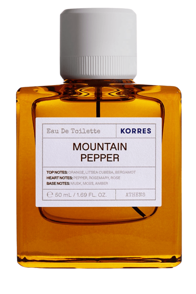 Mountain Pepper Korres (2026) Top Notes Orange, Bergamot Middle Notes Sage, Pepper, Rosemary Base Notes Musk, Amber, Moss. Buy Here